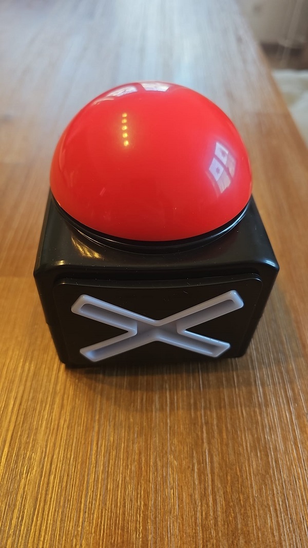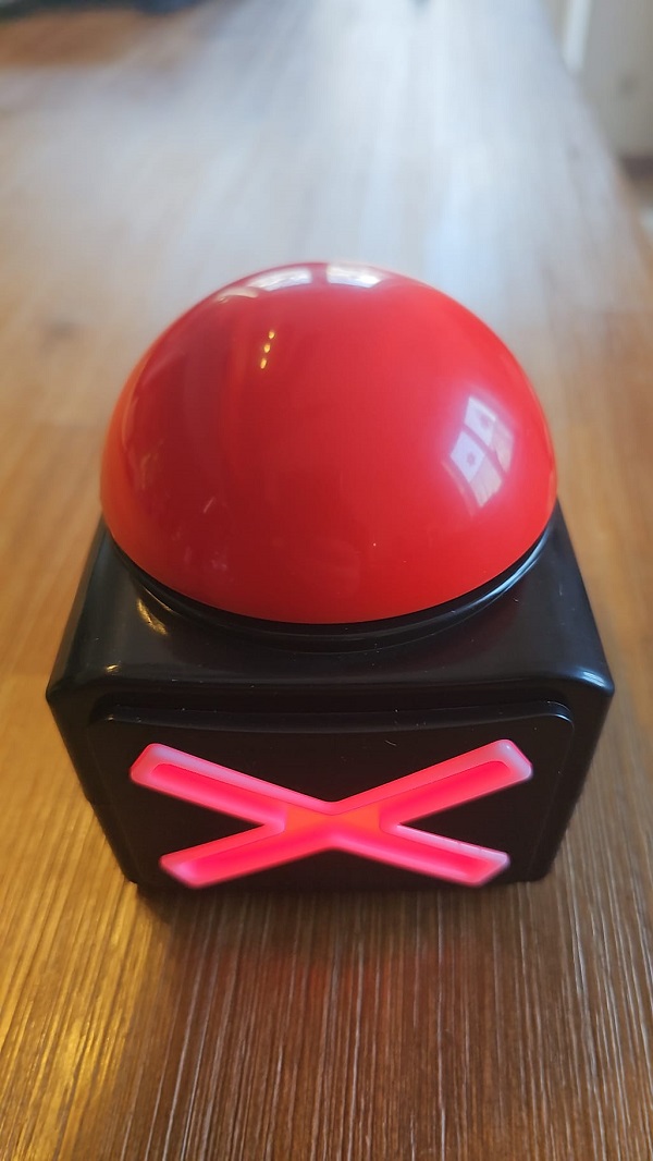 - Beim Drücken des Buttons erklingt der bekannte Buzzer-Sound und das rote Kreuz leuchtet auf.